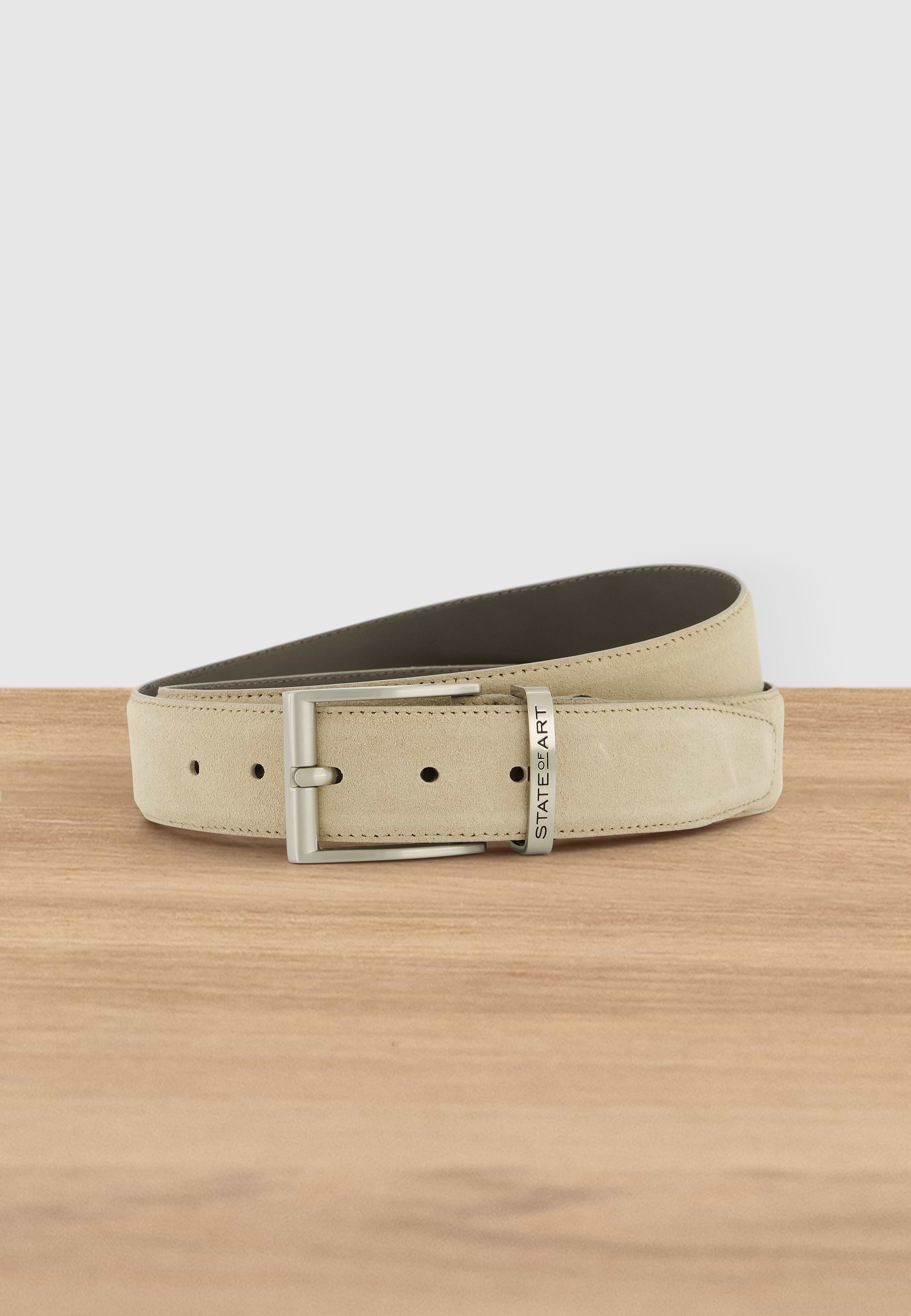 Ceinture en daim avec boucle sans nickel. Cette ceinture de 40 mm de large est entièrement fabriquée à la main, courbée et dotée d'un passant en cuir portant l'estampille State of Art. En outre, les côtés de cette ceinture sont teints et la ceinture est cousue avec du fil de coton de haute qualité sur teinte. Enfin, cette ceinture peut être raccourcie.