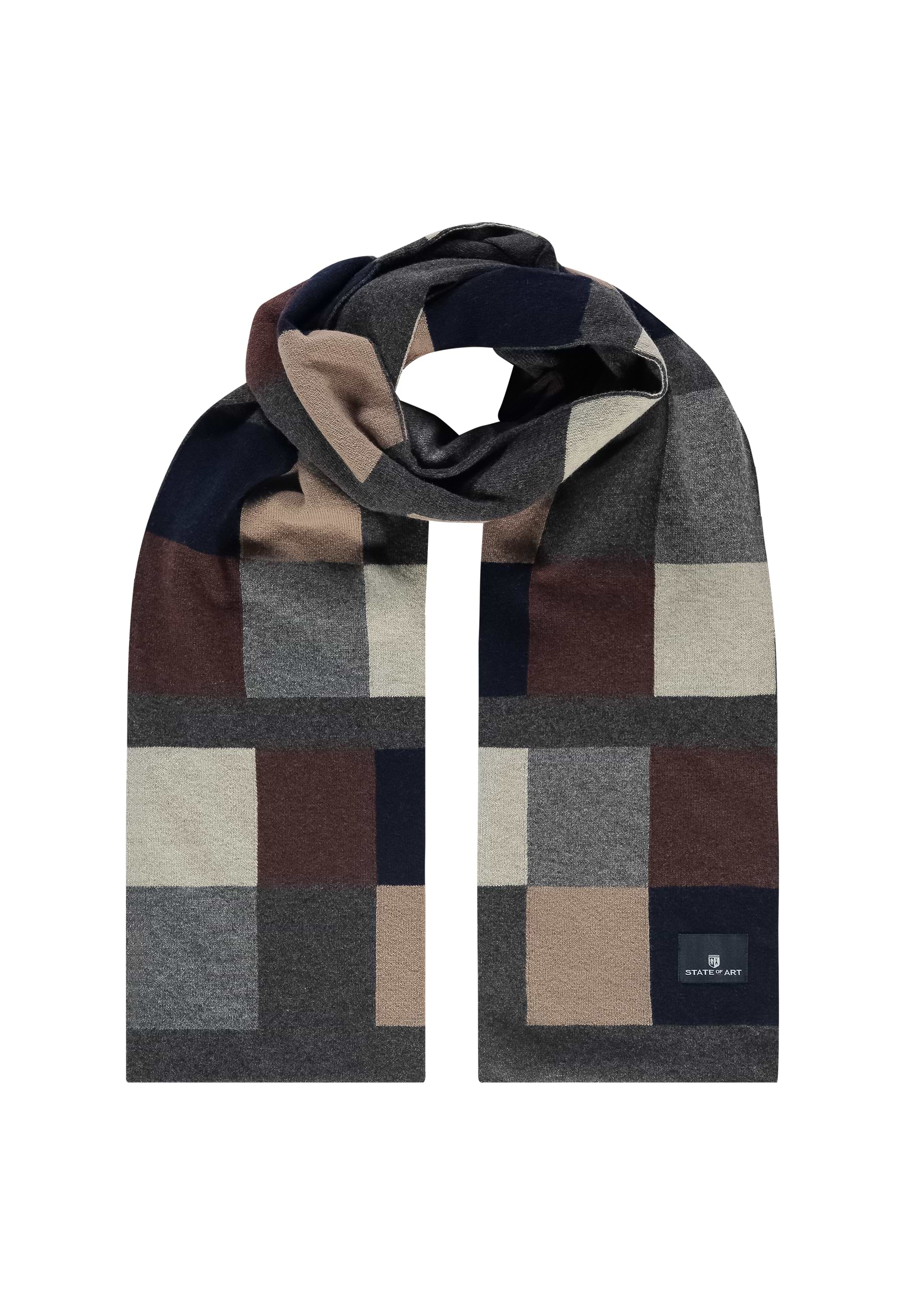 Cette écharpe tricotée en double et en intarsia avec des blocs de couleur abstraits est réalisée en laine chaude mélangée à du polyamide, ce qui lui confère solidité et douceur au toucher. L'étiquette de marque tissée à l'extrémité ajoute une touche finale subtile. Dimensions : 185 x 26 cm