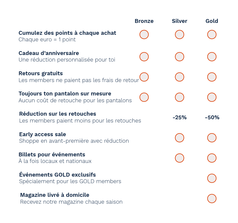 State of Art Loyalty a trois niveaux de membre : Bronze, Silver et Gold. Ton niveau dépend de tes achats et des avantages dont tu peux profiter. Va dans ton compte ou crée-en un, progresse dans les niveaux et découvre tes avantages personnels.