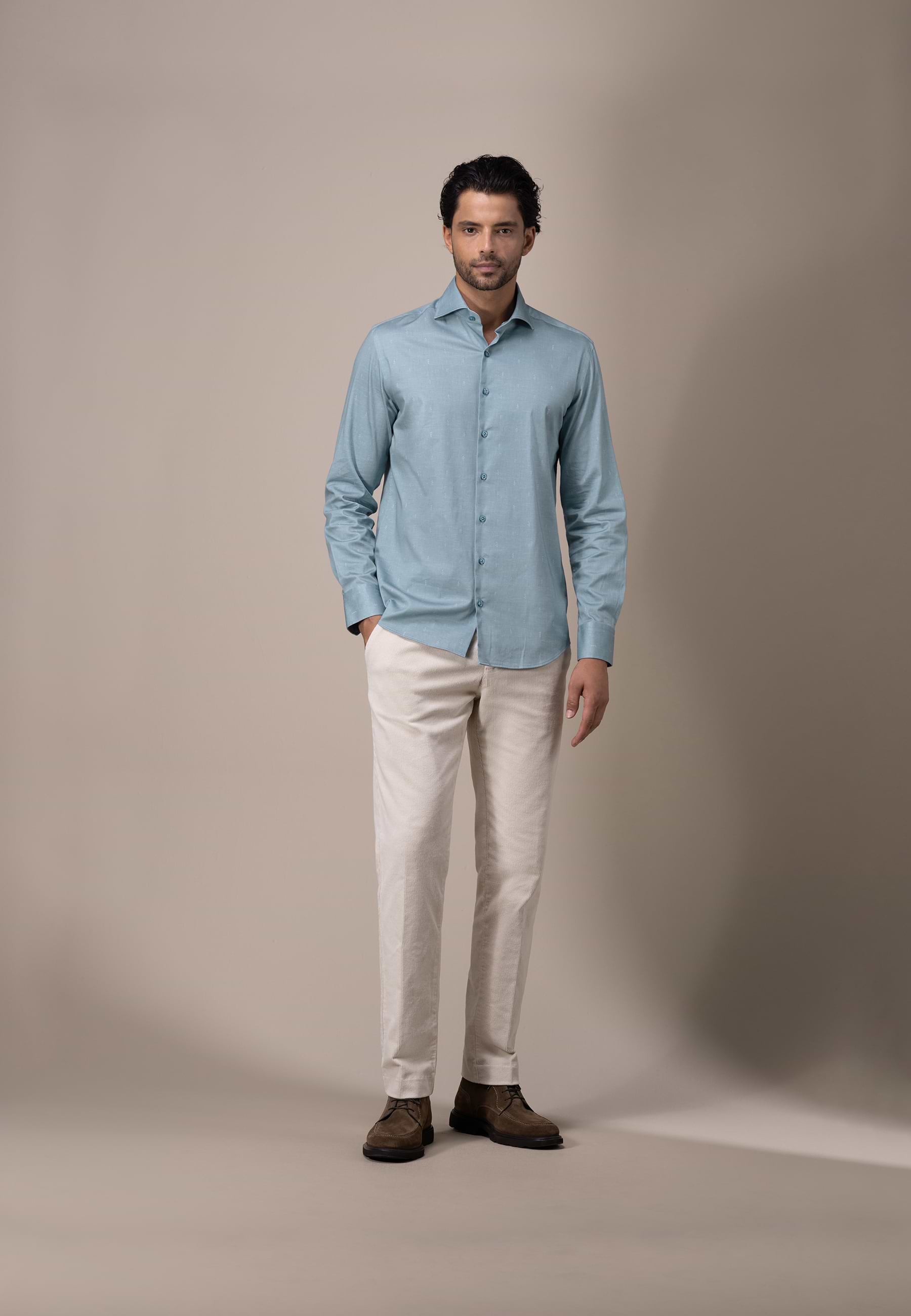 Biologisch katoen met een vleugje stretch combineert ademend vermogen met lichte elasticiteit voor extra comfort en bewegingsvrijheid.