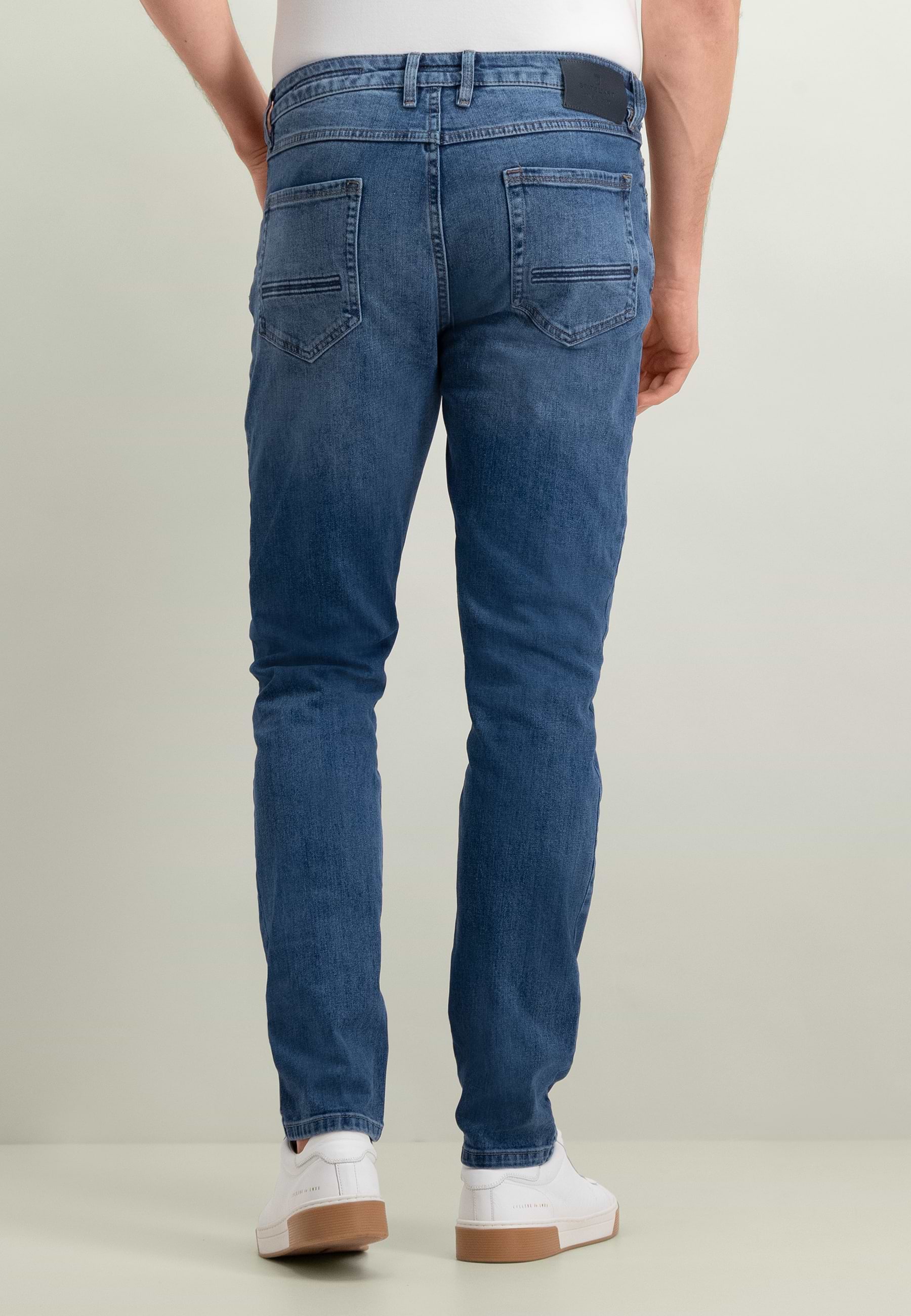 De DRIVER tapered fit 5-pocket van stretchdenim heeft een gewassen look en subtiele brand-details. Uitgevoerd met een knoop- en ritssluiting en het iconische 5-pocket-model biedt deze jeans draagcomfort dankzij het katoen-stretchmateriaal. De tapered fit geeft ruimte bij het bovenbeen en loopt smaller toe bij de enkels, waardoor een modern silhouet ontstaat.
