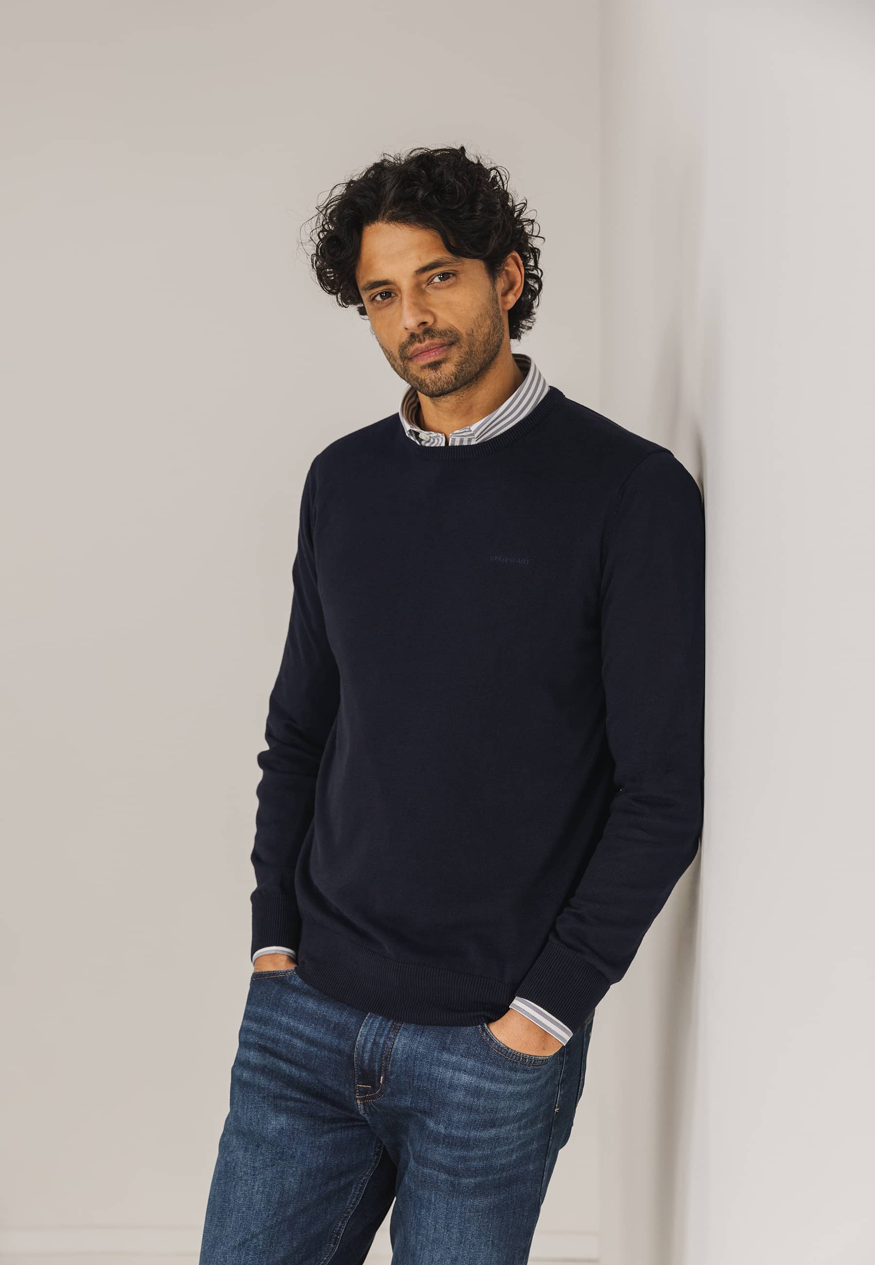 Deze effen ESSENTIALS trui is voorzien van een ronde hals en een regular fit. Doordat de trui is gemaakt van eersteklas katoen, draagt het comfortabel en het beschikt over ademende en zachte eigenschappen. Deze fijngebreide basis trui, met een klein geborduurd logo op de borst, is klassiek en tijdloos, en daarom een aanvulling in elke garderobe.