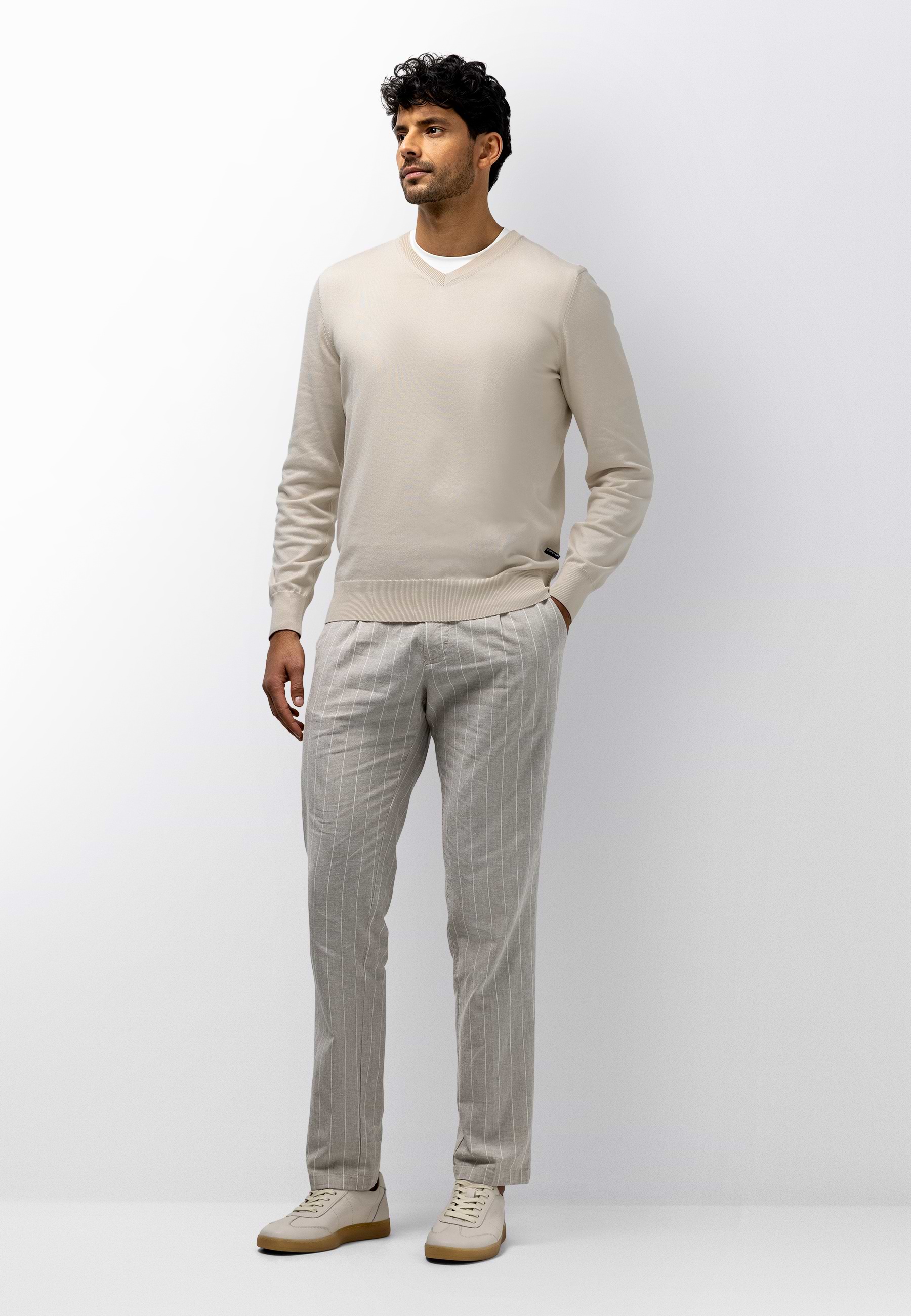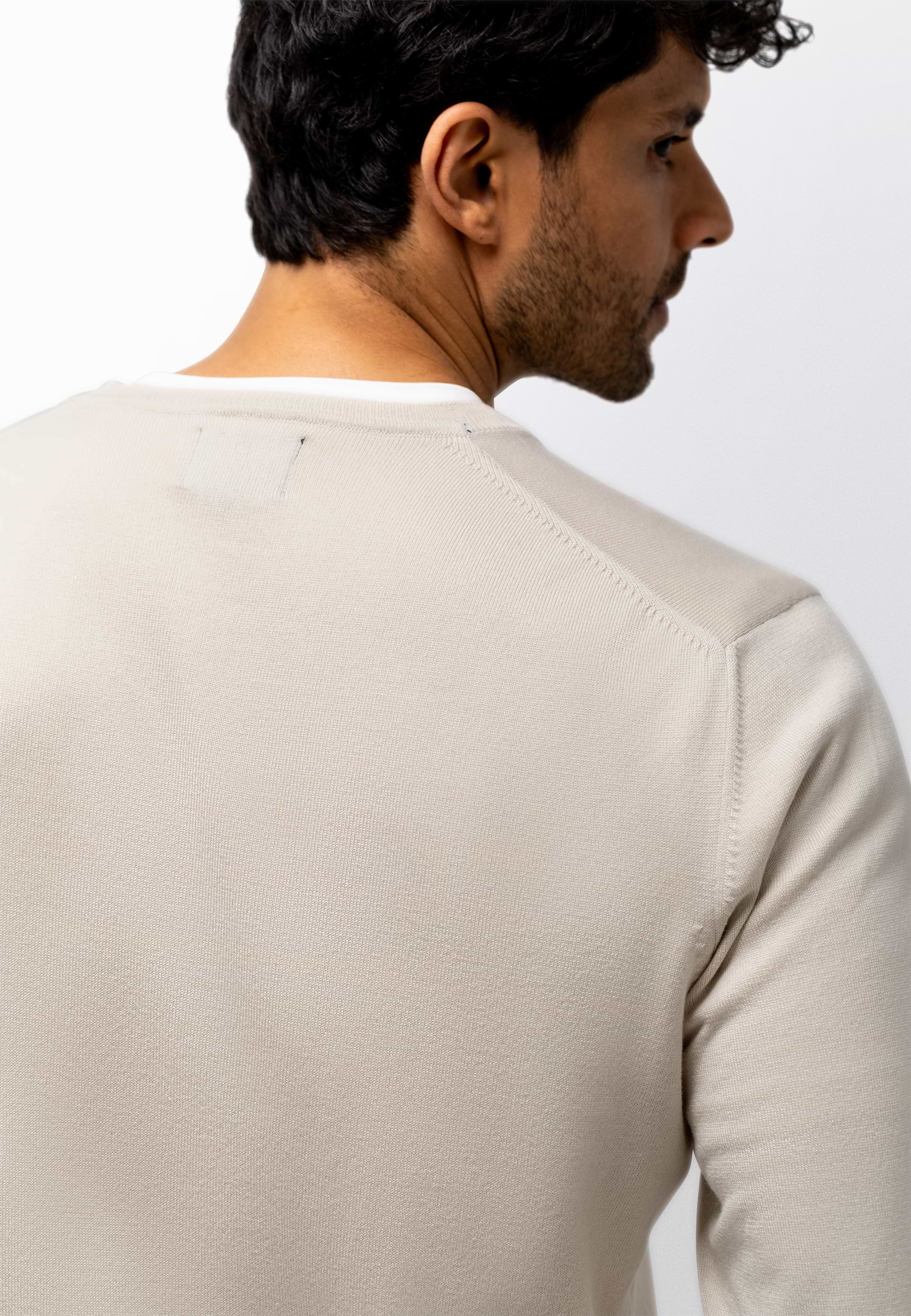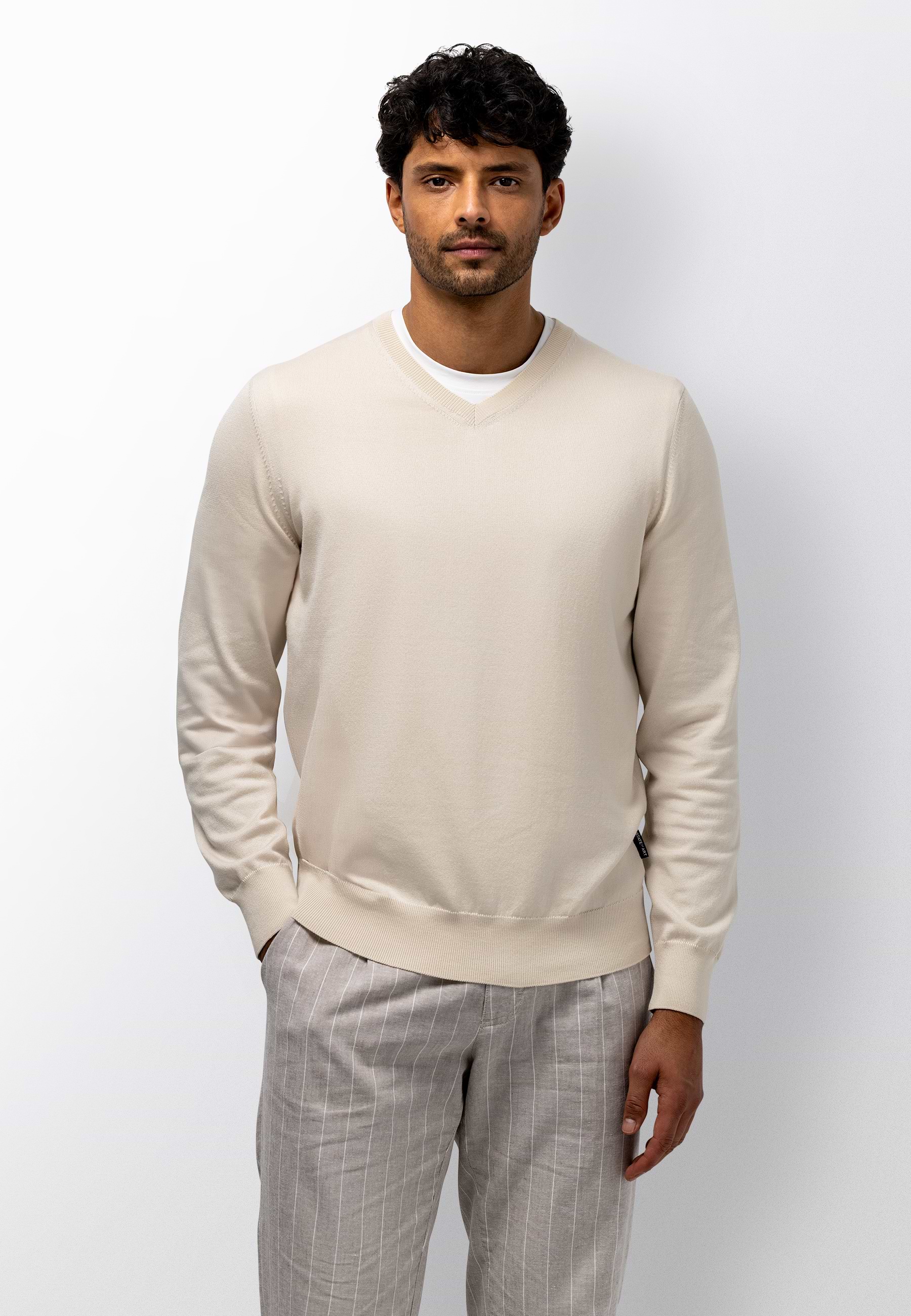 Deze regular fit trui is fijngebreid van een mix van katoen, modal en polyamide, waardoor het materiaal zacht aanvoelt en soepel valt. De V-hals geeft het ontwerp een tijdloze uitstraling en de subtiele afwerking langs boord en mouw maakt het geheel verzorgd.