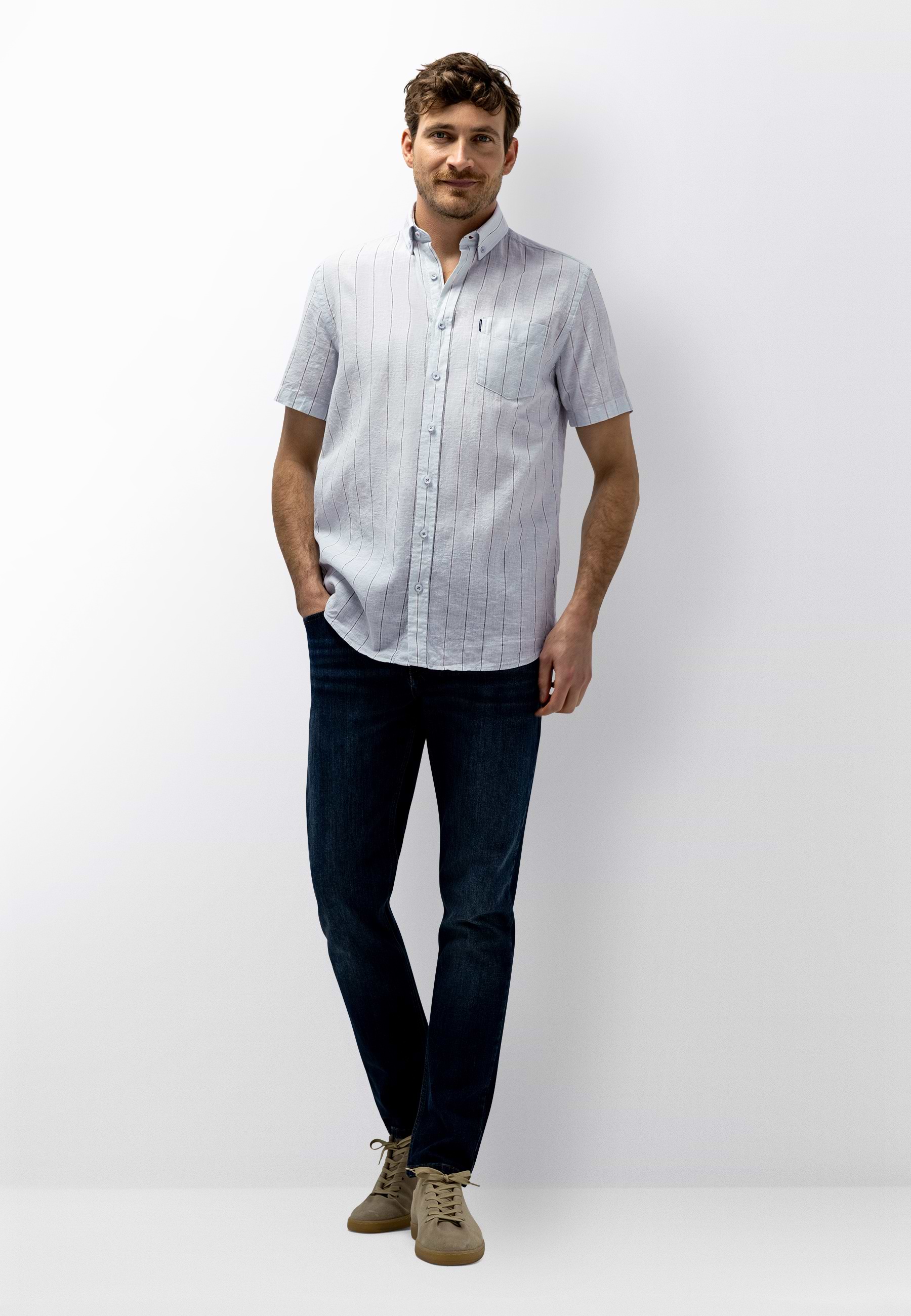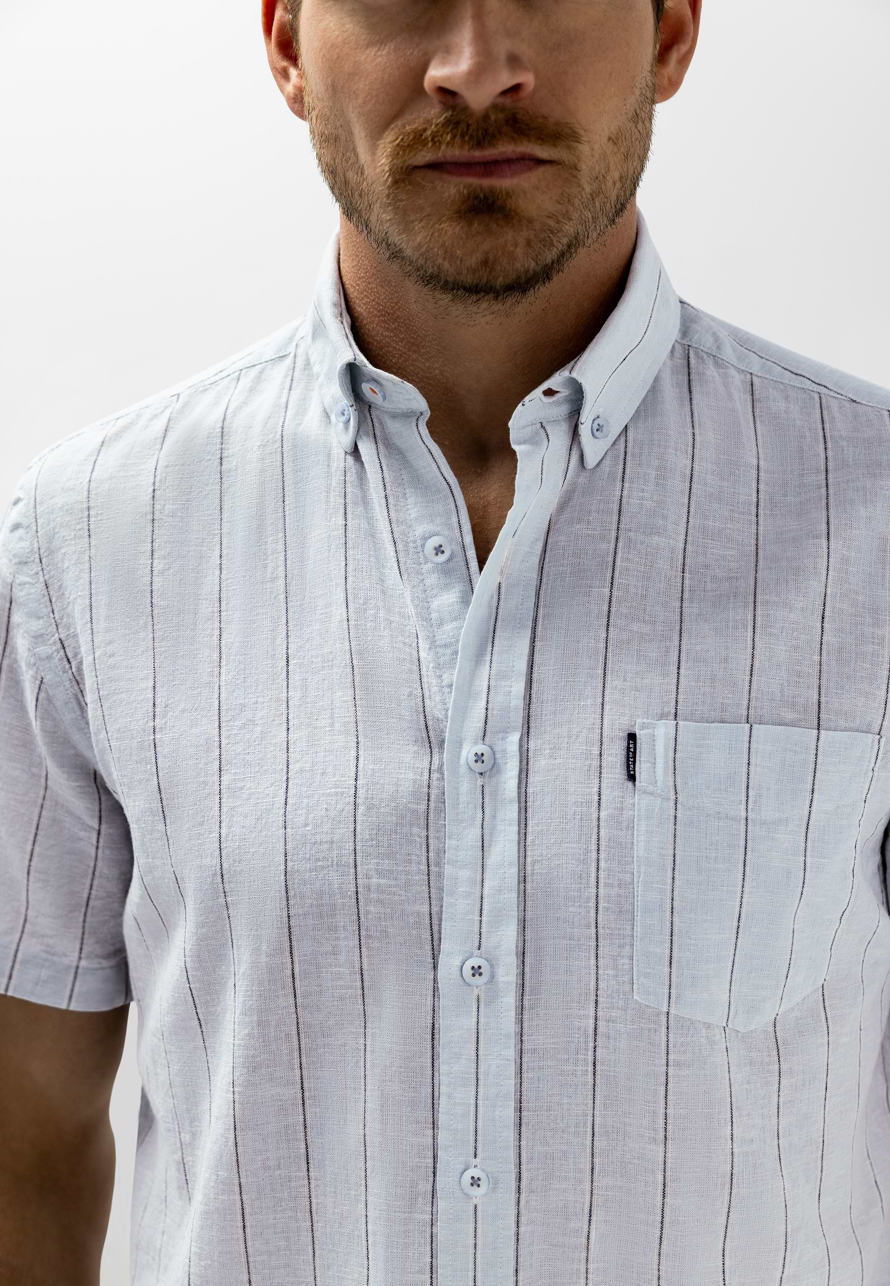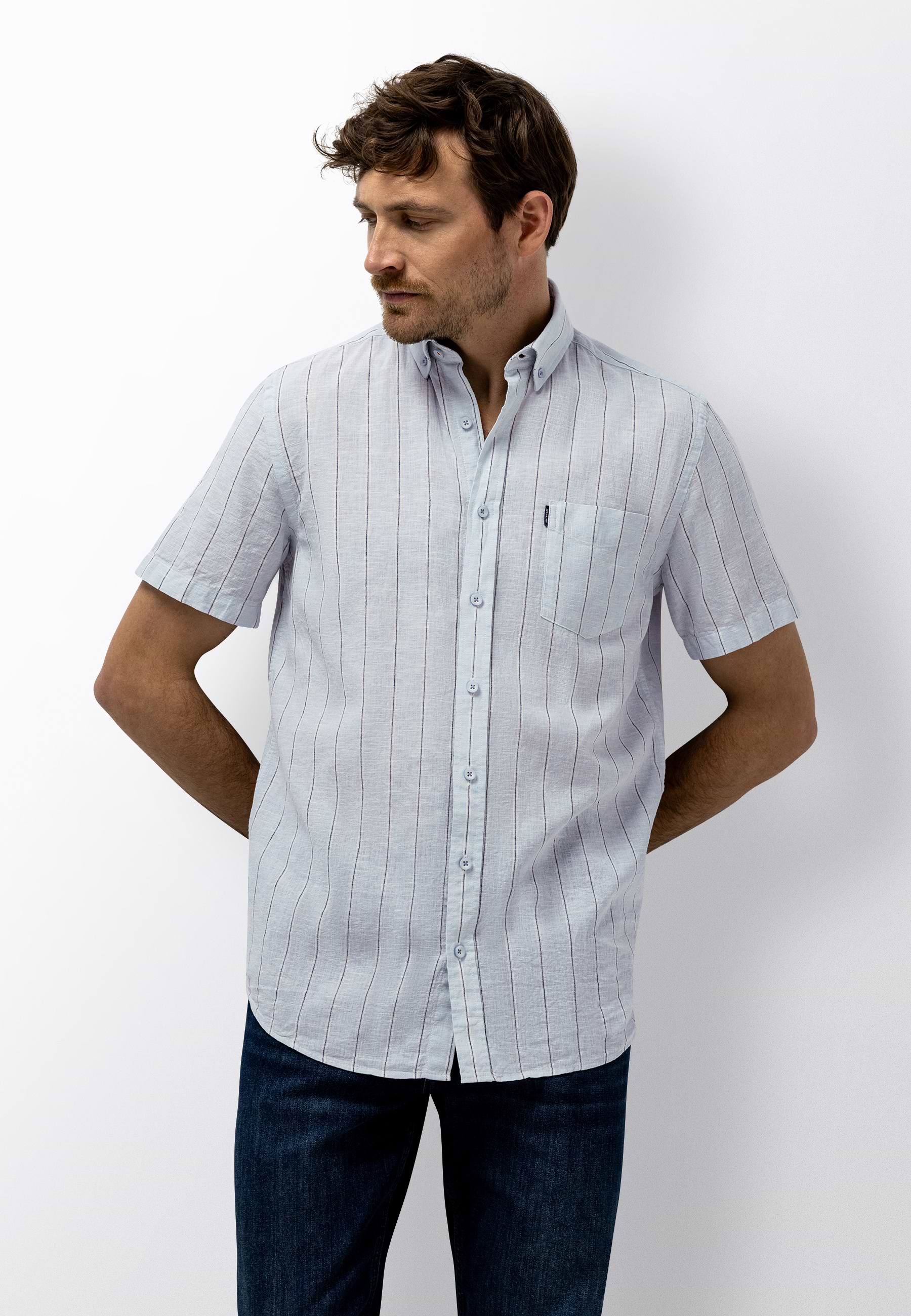 Dit overhemd met korte mouwen heeft een regular fit en is uitgevoerd in een luchtige mix van linnen en katoen, wat zorgt voor een licht en comfortabel draaggevoel. De yarn-dyed strepen geven het ontwerp een levendige uitstraling en een verfijnd karakter. De button-downkraag en borstzak zorgen voor een klassieke en verzorgde afwerking.