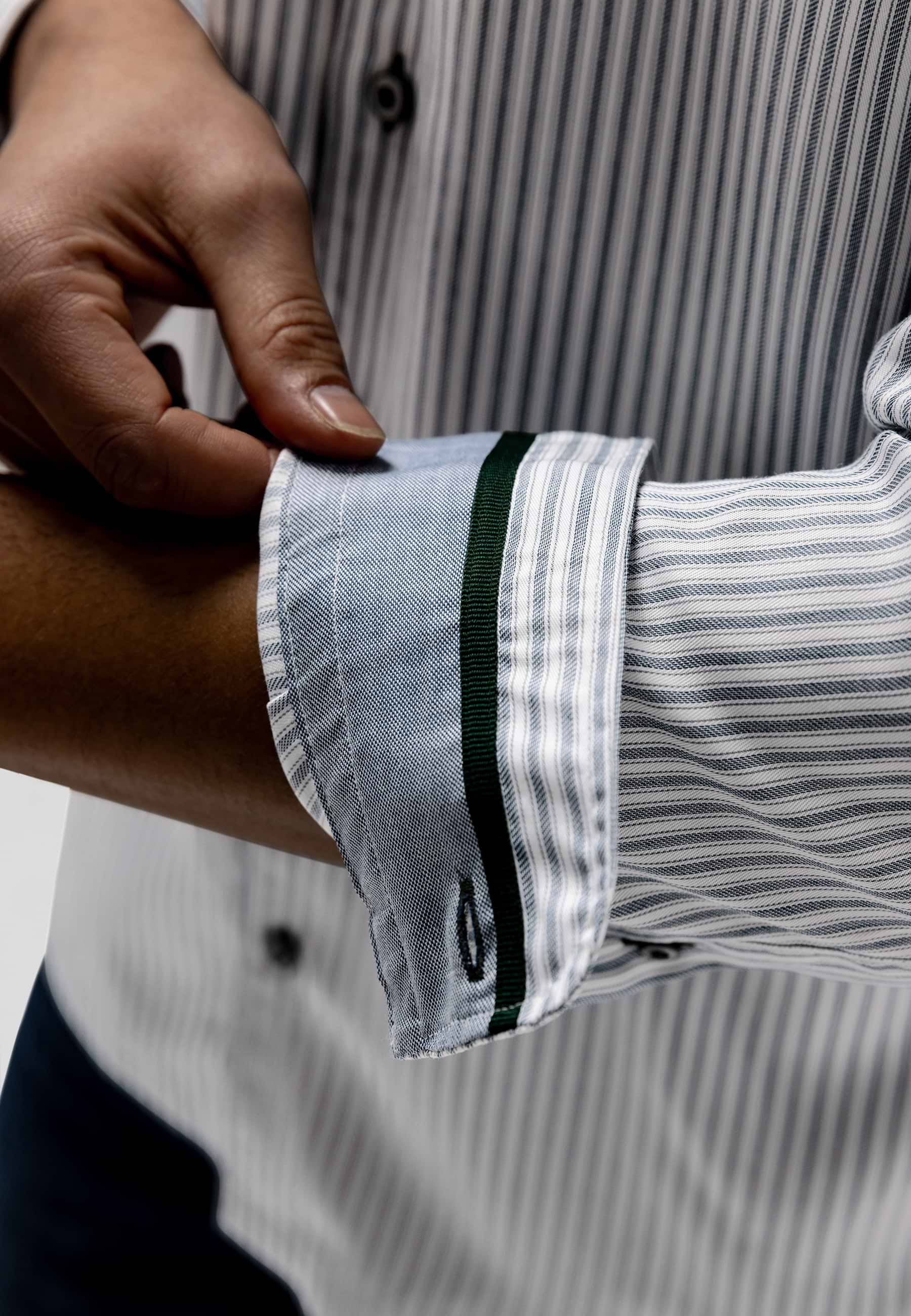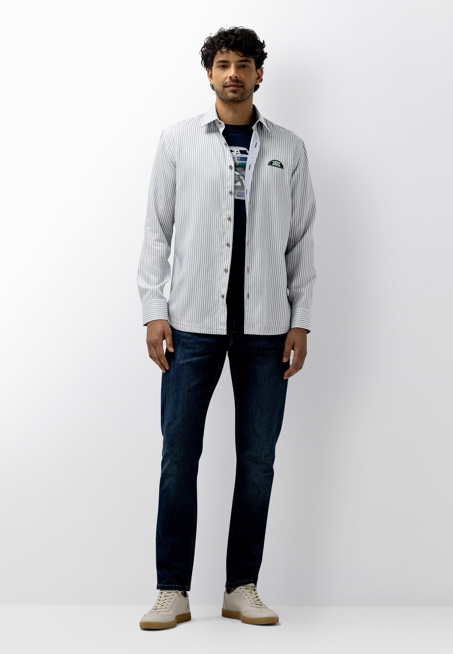 Dit overhemd is uitgevoerd in een verfijnd yarn-dyed streepdessin met een double face structuur, wat zorgt voor subtiel contrast en extra diepte in de stof. Het is gemaakt van lyocell, waardoor het zacht aanvoelt, soepel valt en goed ventileert. De regular fit en LE MANS CLASSIC artworks geven het ontwerp een tijdloze uitstraling met een sportief-elegant karakter.